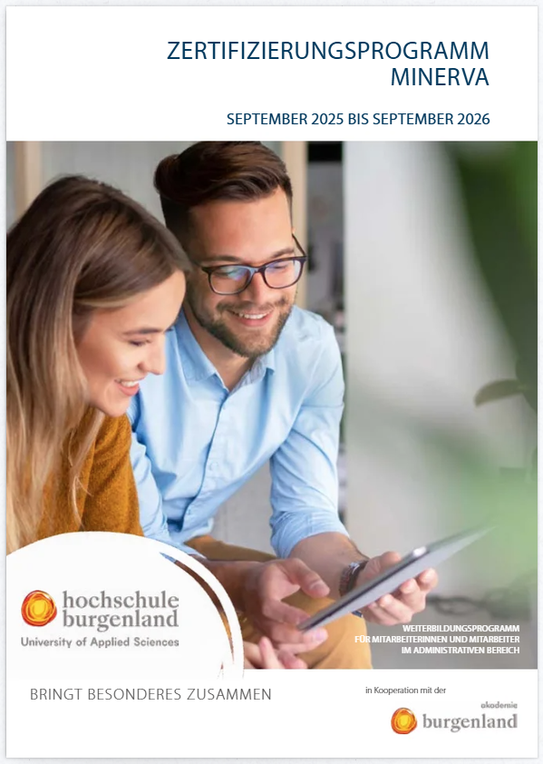 MINERVA richtet sich an alle Mitarbeiterinnen und Mitarbeiter der Hochschule Burgenland Gruppe, die im administrativen Bereich in den Departments, Abteilungen, Stabstellen und Tochterunternehmen der Hochschule Burgenland tätig sind. Es gliedert sich in ein Basisprogramm, fachspezifische und persönlichkeitsfördernde Teile sowie Module für Führungskräfte. Die verschiedenen Module werden in Form von Blended Learning (Präsenz und e-Learning) angeboten. Die Anteile der Präsenz- und e-Learning-Phasen richten sich nach den Inhalten und können bis zu 100 Prozent betragen.